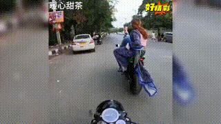 視訊里,一位女子騎坐在摩托車后座,旁邊男子誠懇地給予她善意提醒。然而,這個提醒似乎未能奏效。接下來發生的事情我就不劇透了留些懸念給大家,你們可要親自戳破這層紙。