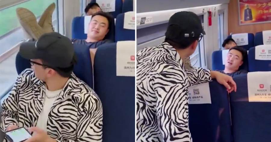 視訊拍攝的場景是高鐵車廂內,坐在前座的男子被后座脫鞋的男子侵犯了個人空間,脫了鞋的腳自在地擱在他的座椅旁。然而,這位年輕人并沒有抱怨,而是用一種大家意想不到的方式進行回應。這場戲劇性的轉折到底是讓后座男子感到羞愧,還是另有隱情?視訊沒有完全展現結尾,引人入勝。